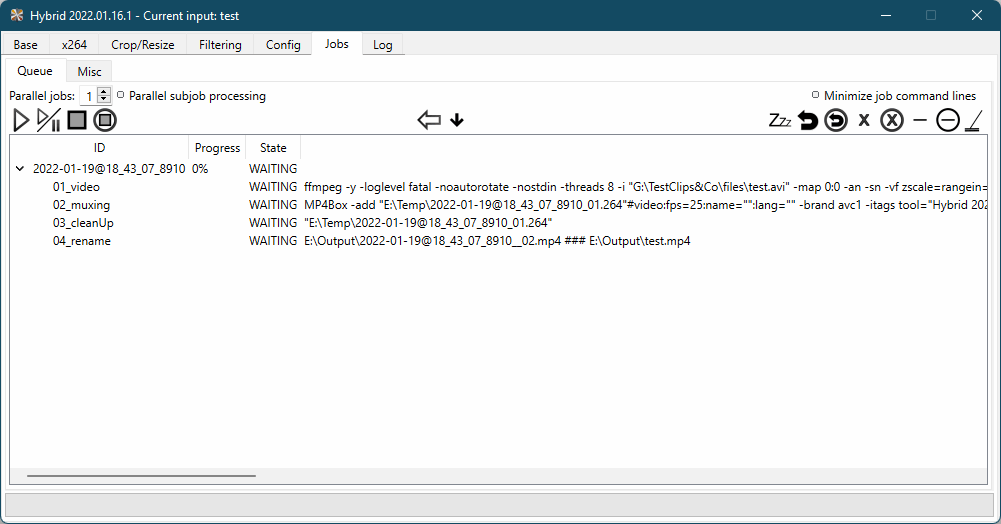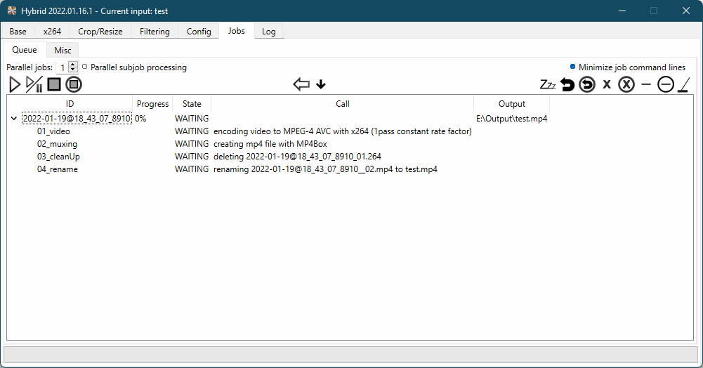 The 'call' -column shows either a short description about what a subjob does (when 'Minimize job command lines' is enabled).