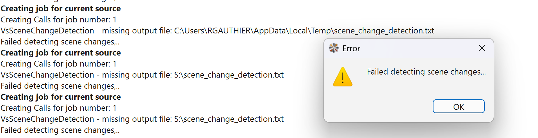 I got a error message that pop-up when I start encoding. "Failed detecting scene change" missing txt file in temp folder