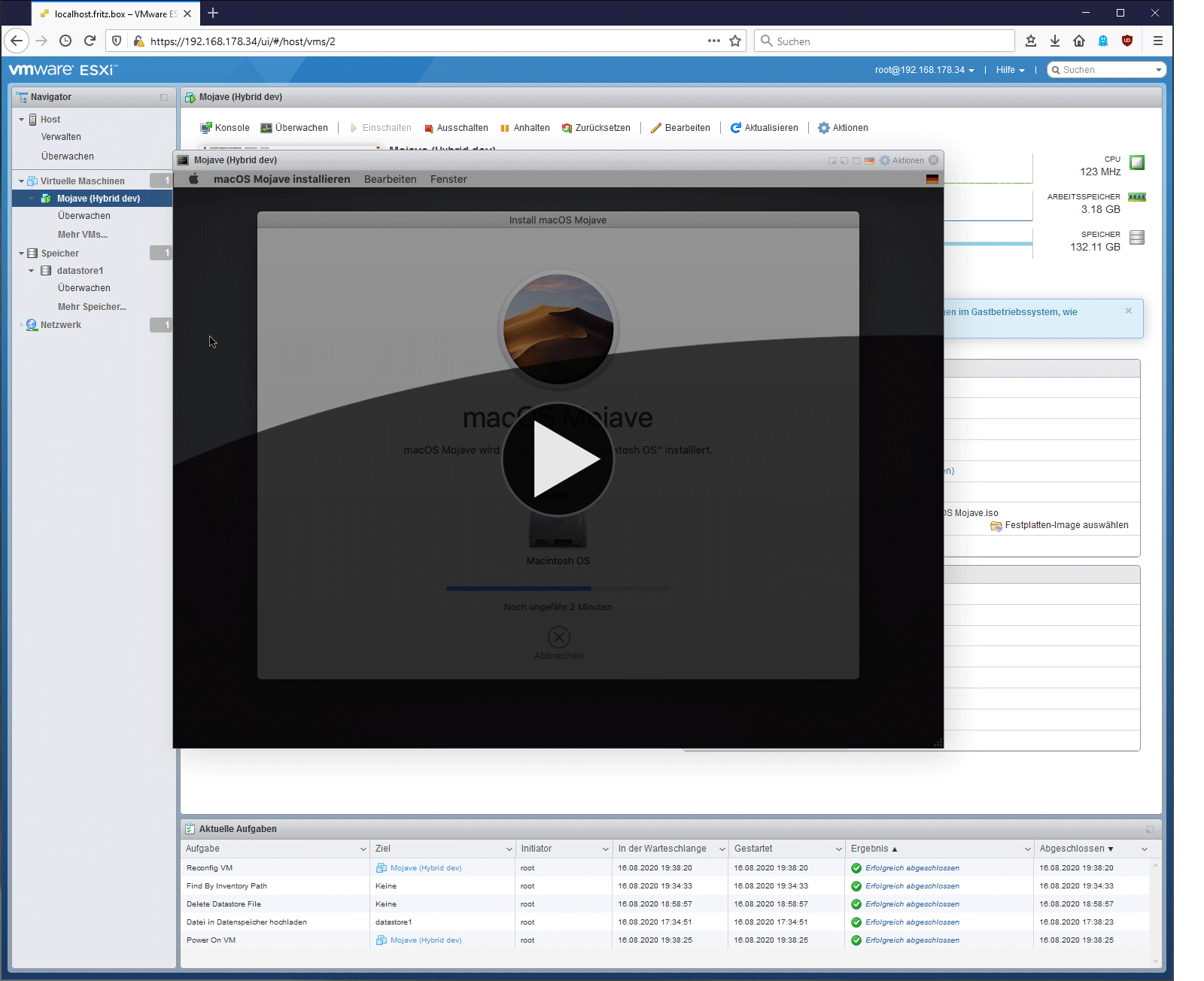 Esxi running macos For selur