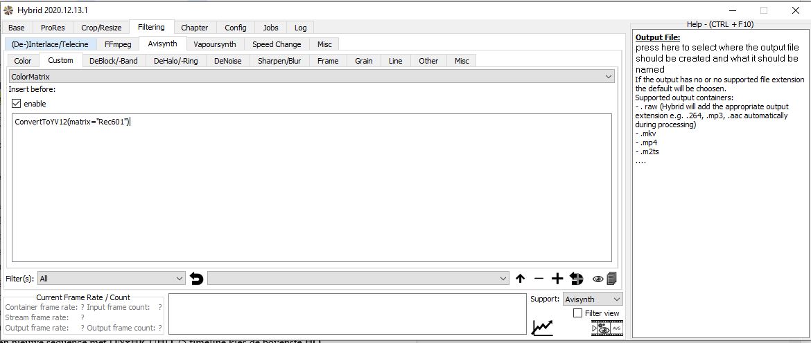 • You tell Hybrid the source is TV Range and bt470bg should be used as color matrix. -> Okay.