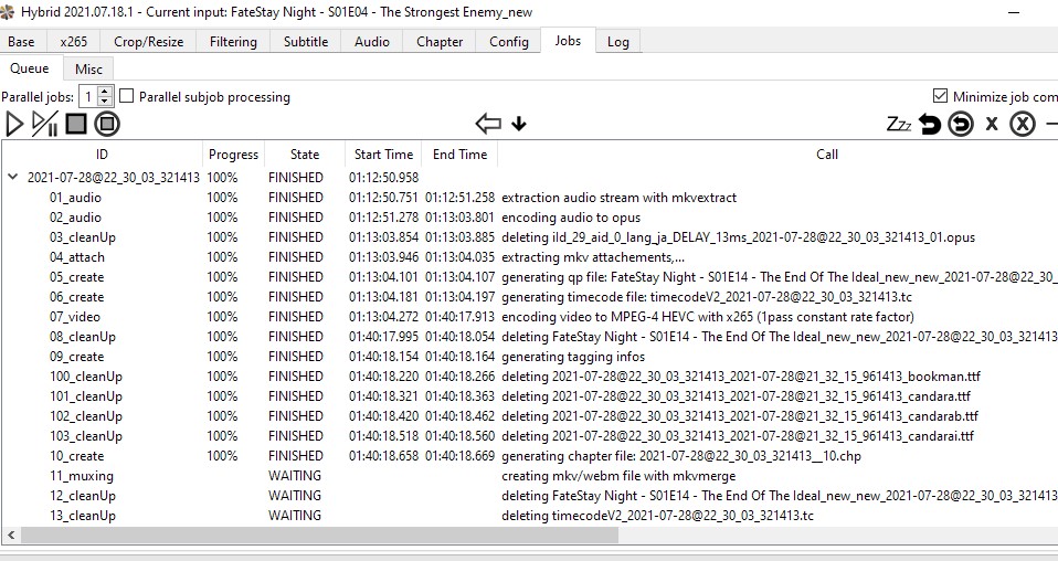 This time the sub jobs listed in natural order but again it stopped at muxing