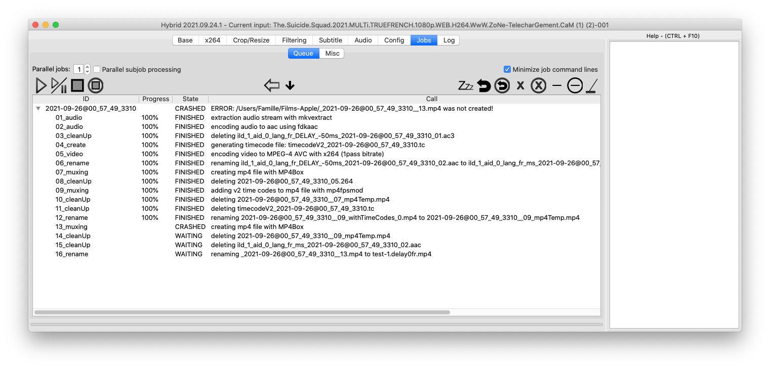 - I disabled "Jobs->Queue->Minimize job command lines" to look at the created job calls, and especially to the MP4Box call