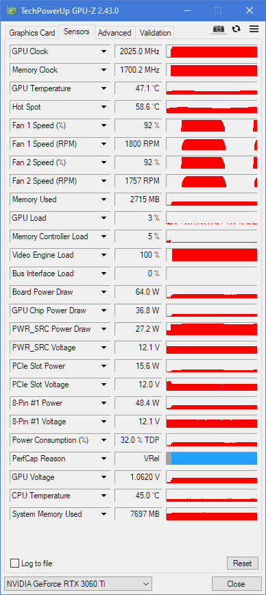 (08.01.2022, 04:36)mimile Wrote: I think you have the same problem as me while encoding, look at "video engine load" it is 99%, it is the same for me. When it is used CUDA, the encoding is performed by using the NVIDIA Video Engine. The capabilities reported by NVEnc are the capabilities reported by NVIDIA Video Engine, so it is right the it is used at 99%. Moreover I think that using a benchmark it is the right why to compare your GTX 1070 with your RTX 3060Ti. For example this is the benchmark of my RTX ![]() As you can see in this case the benchmark is 96.8%, not the best but good enough I don't have applied any overclock and this is the reason why is performing below potential. For comparison my old GTX 1070 was reported having a benchmark of about 78%.