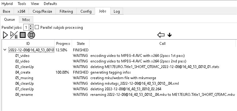I encoded the source file with Handbrake to x265 and then used that file for Hybrid. Same error.