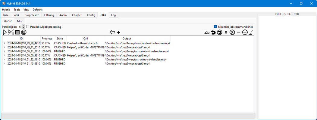 Ah, sorry for too broad of a test case. And too bad they don't crash on your end, definitely something funky about my hardware or Windows then. Maybe tomorrow I can try the jobs on a completely different machine, or on this same machine using the Linux version..