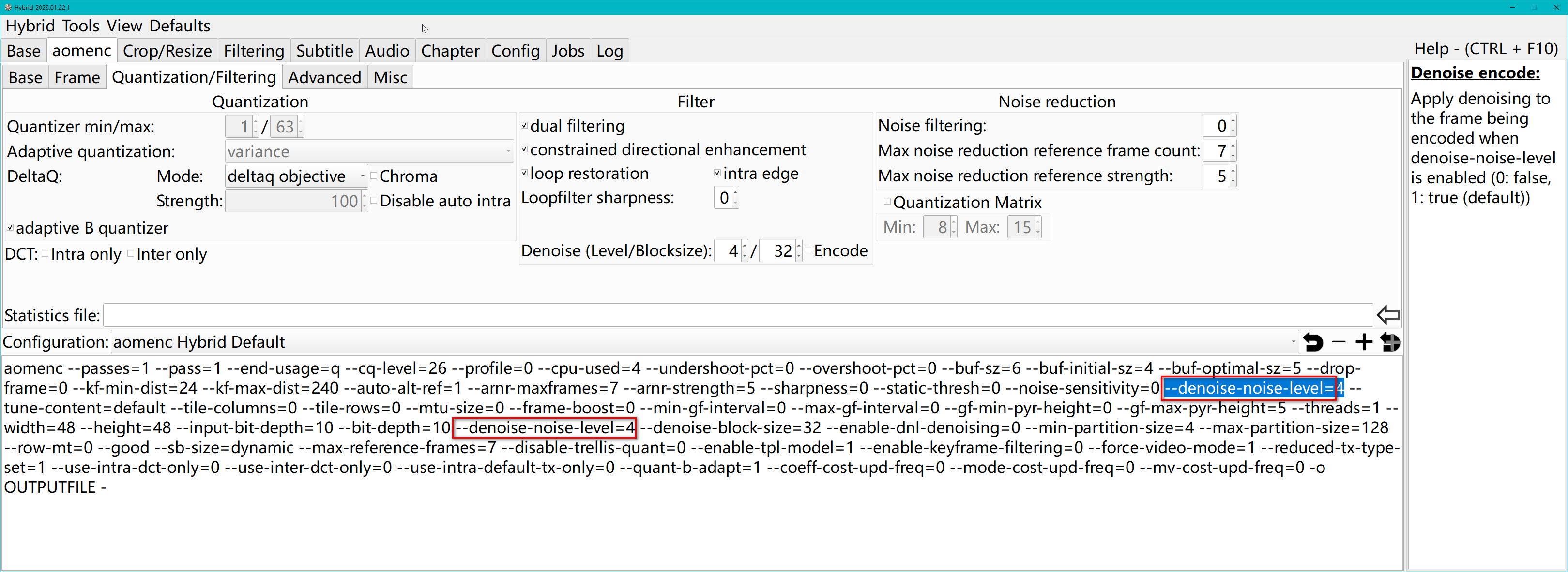 Can you untie --lag-in-frames from 2pass options in the next Hybrid Version in the Frame Tab? its greyed out when seleceted any 2-Pass mode, but its working fine with CQ Constant Quality / Constant Quantizer in Staxrip. Maximum effecvtive is --lag-in-frames 48 and default is 35 not 25, this can make a visible difference in some cases as i found out. (Still only costs more Ram) Earlier it was tied to 2-Pass as i read on google search, but i think its not anymore as i have tested and some people using it together with --end-usage=q --cq-level=. Staxrip also shows me lag in frames 48 is in use. ![]() Somehow the guy from XMediaRecode have got the ETA Timer for AOM v3.6 running. But i think XmediaRecode is using ffmpeg or something or an internal ETA Timer, dunno, thats something Augur have found out and i have tested too. Greetings