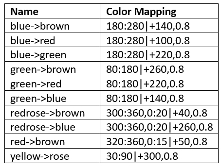 2) Preset Color Map added/renamed some color mapping as displayed in the following table: