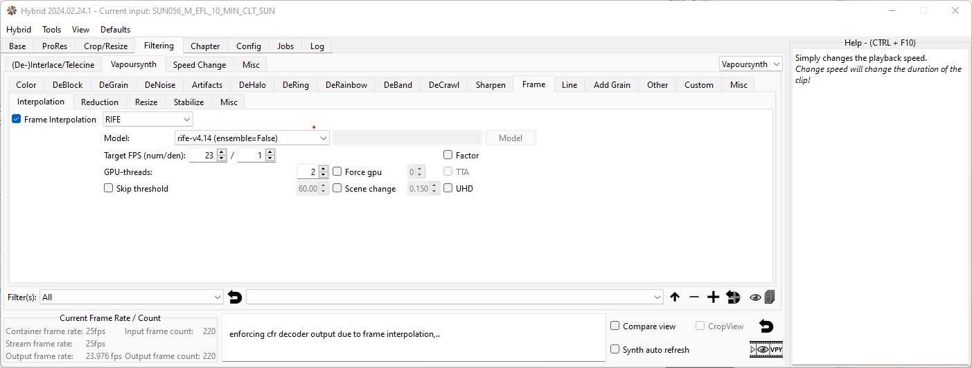 Send you a link to a dev version for testing, which should allow lowering the frame rate with rife without having to overwrite the frame rate.