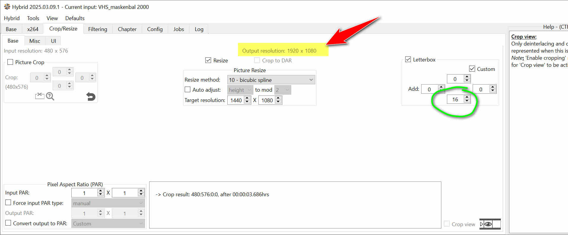 to hybrid's "frame" options (vapoursynth filters), as all other filters on that tab don't seem to be able to just cover vhs headswitching noise on the bottom of the frame with black borders.....offcourse adding black borders on all four sides would be a plus....