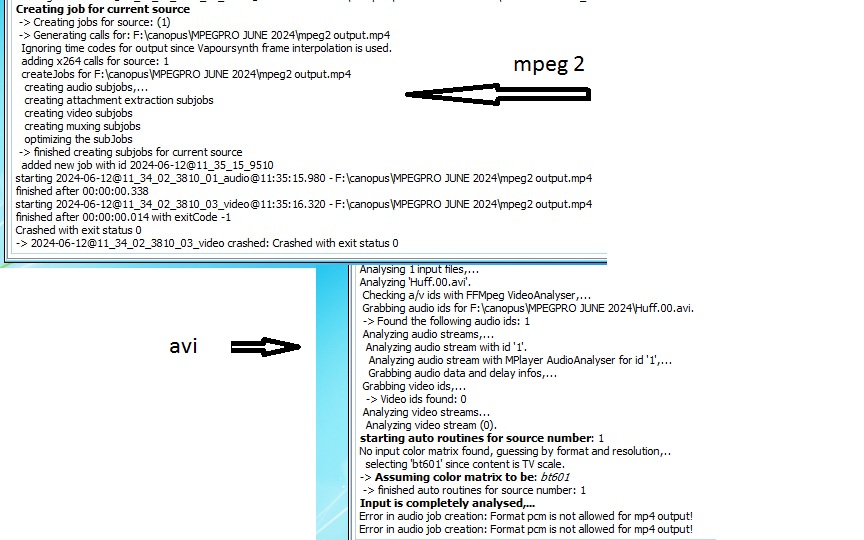 Canopus Mpeg 2 files - When I load the Canopus Mpeg 2 file and try to output to MP4 - It says its crashed in the script box
