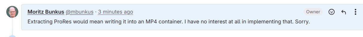 Before extraction was done with mkvextract which does not support ProRes. (Mosu, the mkvtoolnix author, probably doesn't use ProRes. Wink
