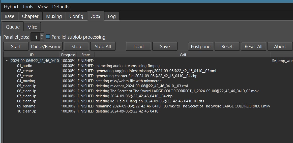 - Loading an .mkv with prores+dts inside (previously created by hybrid)