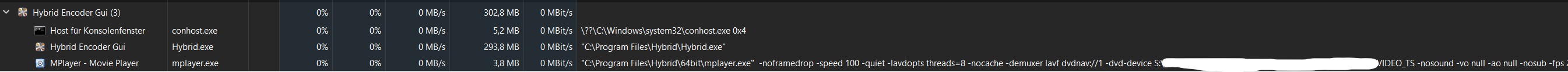 Loaded a DVD source, selected chapter 2, went to autocrop : mplayer opens up in the taskmanager but doesn't do anything; no cpu/gpu use, no drive use, nothing. Hybrid must be restarted in order to get it working again.