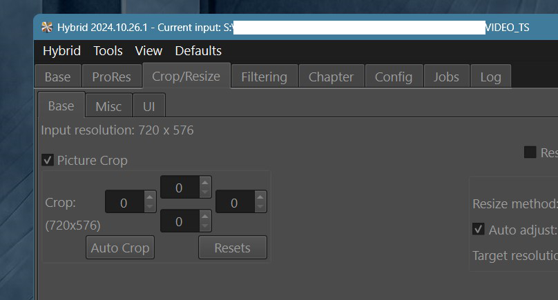 Problem: "Autocrop" gets stuck when a chapter from a DVD source is selected.