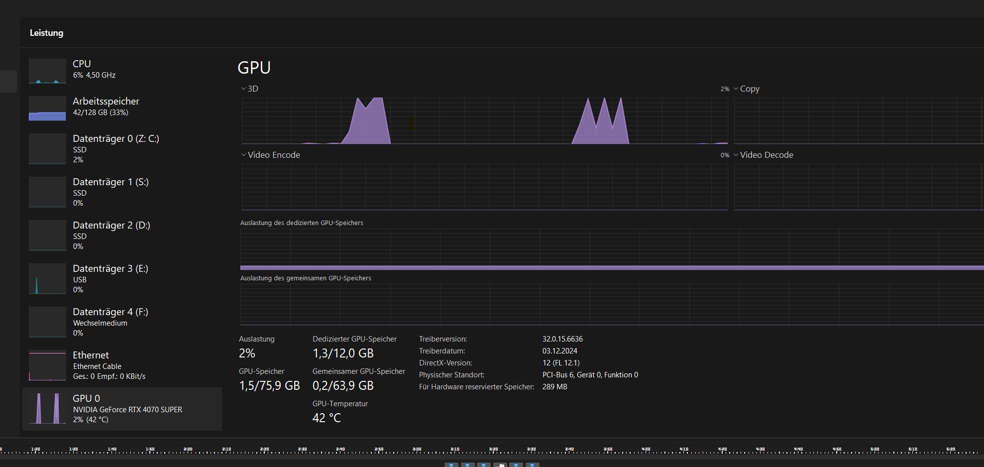 miniscule gpu %, and then.. nothing anymore.. complete no show with 0% vram used.