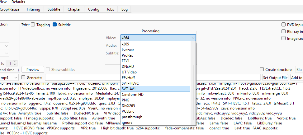 1. What does the Log in the Log-Tab show after you started Hybrid? 2. What does "PATH TO /Hybrid/64bit/NVEncC.exe --check-features" show on your system? If you are not on a Windows system, only FFNVEnc is supported (atm.). Cu Selur Ps.: Try also triggering "Config->Tools->Clear all cached tool infos".