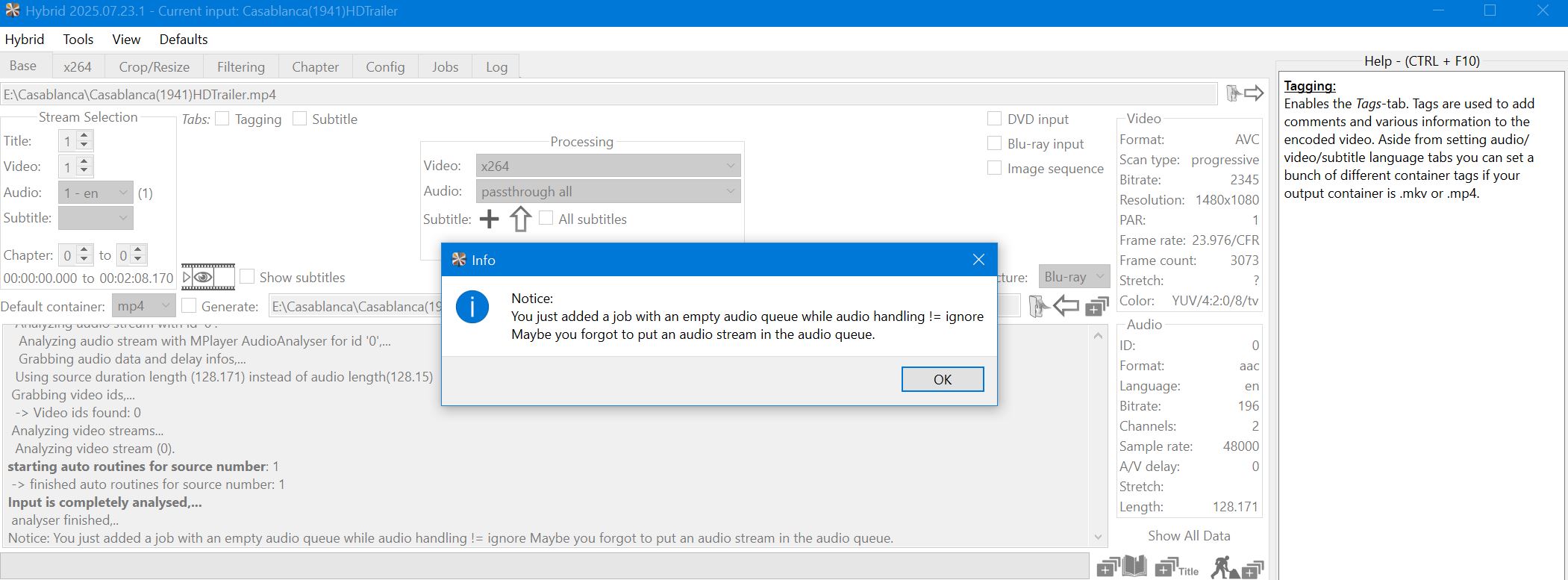 As soon as I add a job to queue that does have an audio, it gives me this warning: see attached screenshot