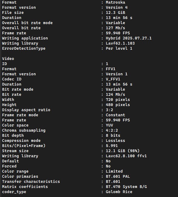 # adjusting output color from: YUV444P16 to YUV422P8 for FFV1Model