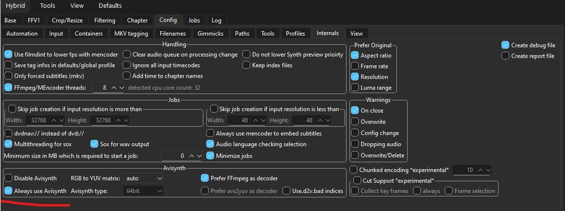 Prefer LWLibAVSource over FFmpegSource2: ON (or, if testing AVS: “Always use Avisynth” + AviSource)