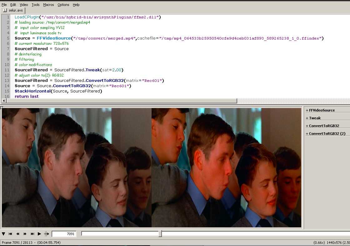 Source = FFVideoSource("/tmp/convert/merged.mp4",cachefile="/tmp/mp4_064533b25950540cfe9d4ceb031af893_936145377_1_0.ffindex")